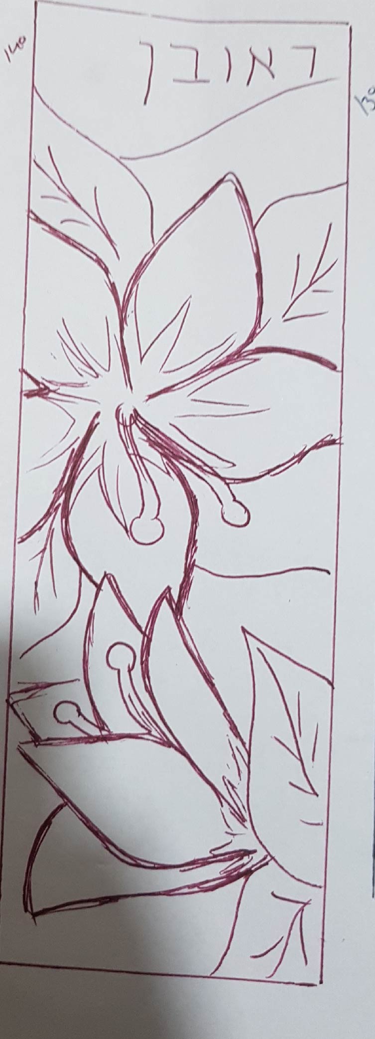 - שלב שני - אחרי שקבענו את הגודל המתאים, ציירתי במחשבה את האיורים הרצויים, ואחרי כן העברתי לסקיצה ראשונית על הנייר לאישור הלקוח.
